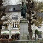 Centraal grasveld met standbeeld van André Dumont en omringend plantsoen