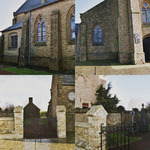 Heropgebouwde parochiekerk Sint-Pieter met omringend kerkhof : gedenkplaat Karabiniers en gedenkplaat 8ste Linieregiment