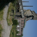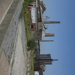 Verdwenen cokesfabriek Carcoke te Zeebrugge Zicht op kleedkamers en schooorsteen 1