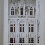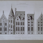 De Rijksnormaalschool: n.o.v. de la Censerie - geveltop bibliotheek - aanzicht & doorsnede (uit l'Emulation)