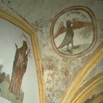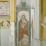 De St.Genovevakerk: interieur ; muurschildering - detail: St.Thomas met bijl en winkelhaak