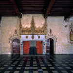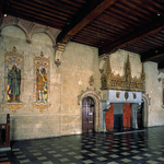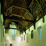 De Hallen: binnenzicht op de 1ste verdieping met open dakgebinte (14de eeuw)