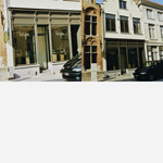 Stadswoning met houten winkelpui en hoekhuis