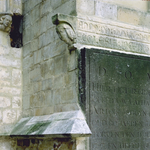 De St.Jan-de-Doperkerk v/h Groot-Begijnhof: gebeeldhouwde hoofden + inscriptie