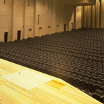 De Singel: n.o.v. L.Stynen (I.S.M. P.De Meyer) - interieur: concertzaal - detail: podium met zitplaatsen publiek (45°)