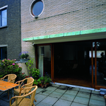 Het woonhuis van Léon Stijnen: de zijgevel i.d. Volhardingsstraat met terras