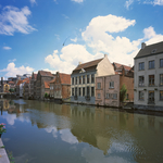 Zicht op de drie torens: Sint-Niklaaskerk, Belfort en Sint-Baafskathedraal